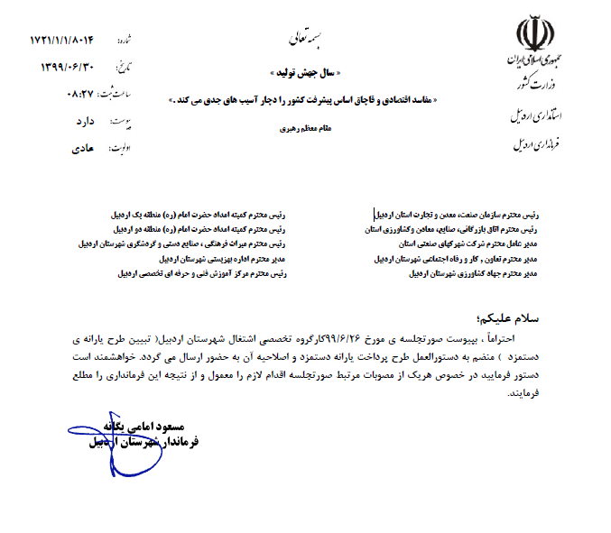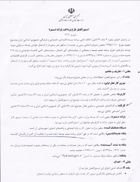 ابلاغ بخشنامه دستورالعمل طرح پرداخت یارانه دستمزد