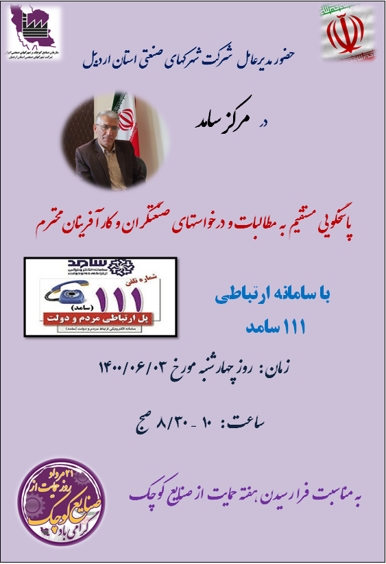 حضور مدیرعامل شرکت شهرک های صنعتی استان اردبیل در سامانه ارتباطی 111 سامد